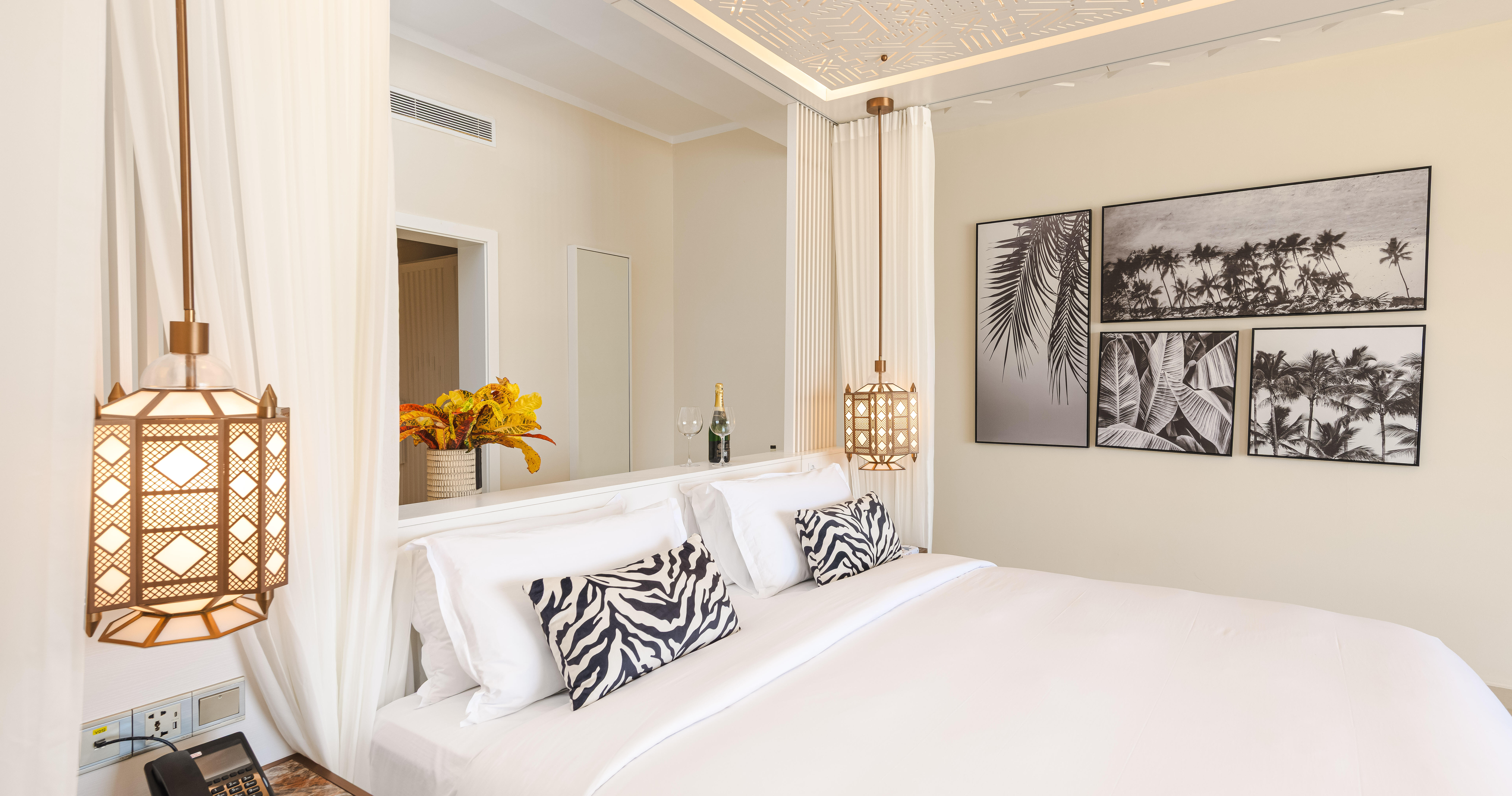 Rommene er romslige og stilfullt innredet, med private balkonger eller terrasser og utsikt mot hage eller hav. Her kombineres moderne fasiliteter med subtile detaljer inspirert av Zanzibars lokale arkitektur og natur.